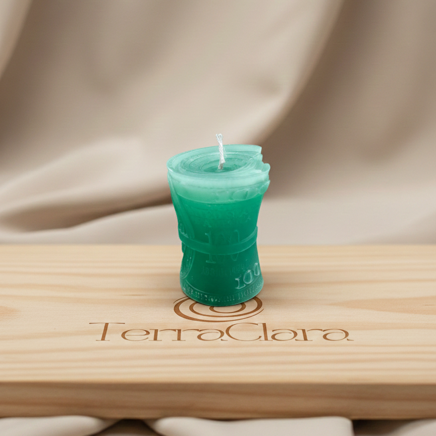 DESCRIPCIÓN: Esta vela ritual verde de prosperidad de billetes de dólar, ha sido creada para activar la intención de abundancia, orden económico y apertura de oportunidades materiales.