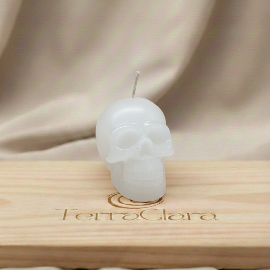 DESCRIPCIÓN: Esta vela ritual de cráneo blanco, de 7,5 cm, ha sido creada para trabajar la claridad mental, la limpieza energética de pensamientos y la protección emocional consciente.