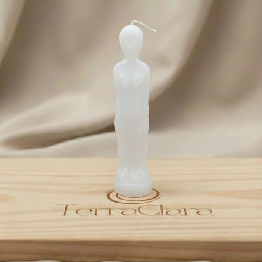 DESCRIPCIÓN: Esta vela ritual en forma de figura masculina, de 20 cm y color blanco, ha sido creada para limpiezas energéticas profundas, protección personal y claridad mental, acompañando procesos donde es necesario ordenar la energía, calmar la mente y tomar decisiones desde la conciencia.
